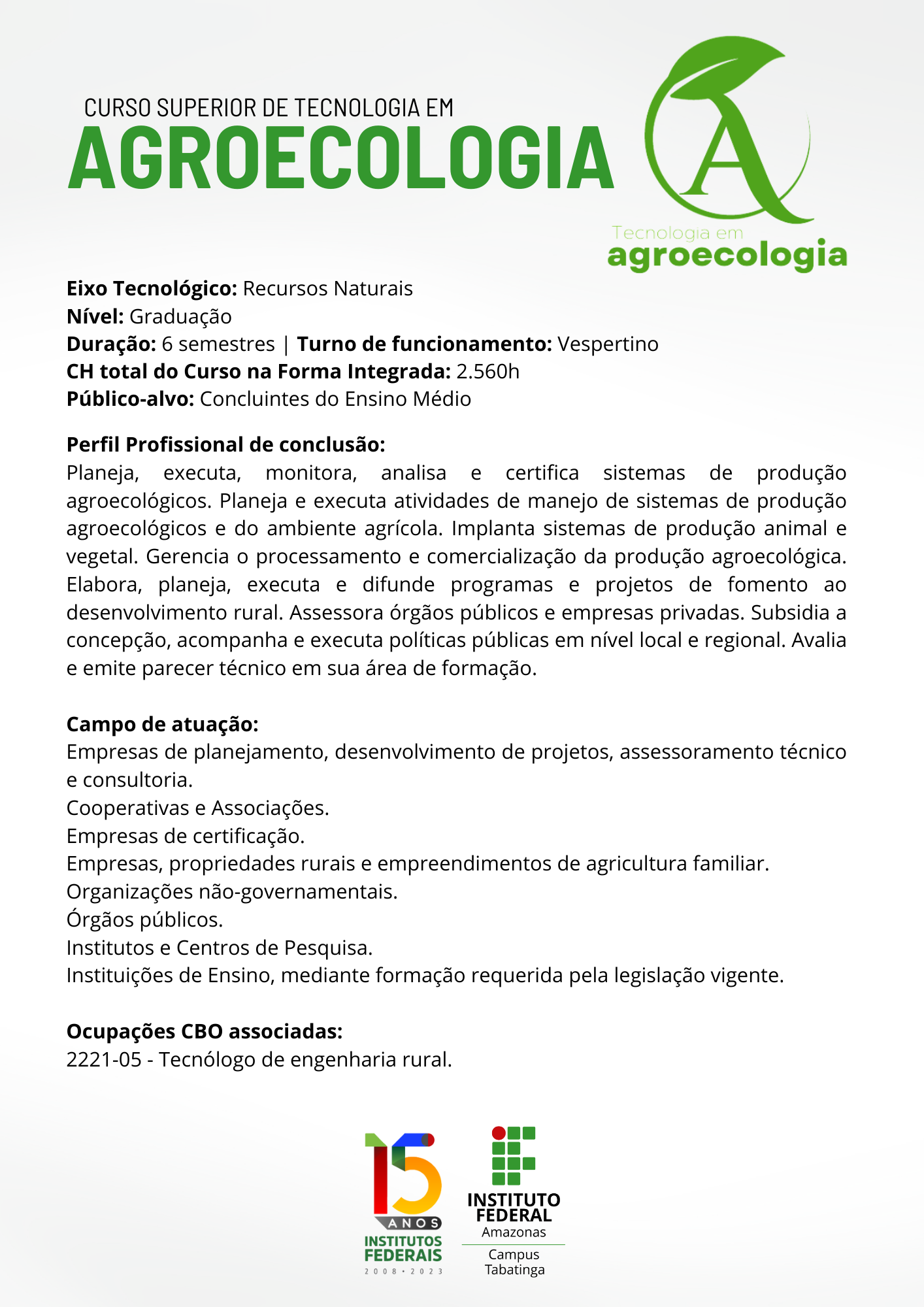 Catálogo - Curso Superior de Tecnologia em Agroecologia
